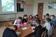 Сегодня, 30 октября, второй день осеннего лагеря. Мероприятия начались с поднятия флага. Дети после зарядки позавтракали. Учитель начальных классов Низамиева А. М. провела занятие "Мир фантазий". Дети с удовольствием создавали свои шедевры с помощью пластилина. Под руководством Мардановой Л. И. прошёл творческий конкурс рисунков " Мы за Мир". Цель занятия: содействие воспитанию у детей патриотизма, чувства солидарности к происходящим в мире событиям, чувства гордости за свою страну. Дети разошлись по домам с поднятым настроением.