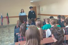 Участковый уполномоченный полиции капитан полиции Хабибуллин Ф. Ф. и старший инспектор ПДН ОМВД России по Сабинскому району майор полиции Котдусова М. И. провели беседу с учащимися на темы: «Ответственность за проступки», «Умей сказать – НЕТ!», «Права детей».