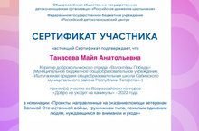 Активисты РДШ (Галиахметова Реналия, Князькова Полина, Мавлютов Кристин, Назарова Кристина) и педагог-организатор Танасева М.А. приняли участие во Всероссийском конкурсе "Добро не уходит на каникулы" - 2022 года в номинации "Проекты, направленные на оказание помощи ветеранам Великой Отечественной войны, труженикам тыла, пожилым одиноким людям, нуждающимся во внимании и уходе".