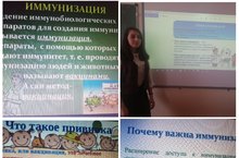 В рамках Недели иммунизации 24 апреля в школе прошли классные часы на тему «Иммунизация». Классные руководители рассказали, что такое «Вакцинация», «Иммунная система», «Инфекция». В ходе классного часа был организован просмотр видео «Всё о иммунизации».