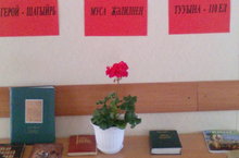 Мәктәптә "Туган тел" атналыгы кысаларында шагыйрьнең әсәрләреннән китаплар күргәзмәсе оештырылып укучыларга тәкъдим ителде.