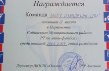 Бүген укучыларыбыз Шәмәрдәндә мини-футбол буенча район беренчелегенә үткәрелүче ярышта катнашып, 3нче урынга лаек булдылар. Укучыларыбызга һәм җитәкчеләре Азат Гильмулловичка алга таба да җиңүләргә ирешүләрен теләп калабыз.
