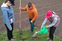 Укучыларыбыз белән мәктәп бакчасына җиләк-җимеш агачлары утырттык