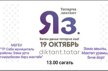 19нчы октябрь көнне 13.00 сәгатьтә Эзмә урта гомуми белем бирү мәктәбенә татарча диктант язарга рәхим итегез! Бу чарада һәркем катнаша ала.