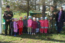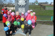 Бөек Җиңүнең 68 еллыгып искә алу уңаеннан бакчабызда тәрбияләнүче балалар да бүген һәйкәл янына бардылар, үз куллары белән ясаган чәчәкләрне куйдылар. Өйрәнгән шигырьләрен сөйләделәр, җырларын җырладылар. Истәлек өчен фотога төштеләр.