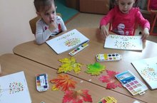 Пумаланы дөрес тоту,төсләрне аера белү һәм куллану күнекмәләре булдыру максатыннан кечкенәләр төркеме балалары белән яфракларны буядык.