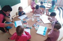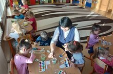 Кечкенәләр төркеменә йөрүче балалар рәсем эшчәнлегендә кар бөртекләрен ясадылар.