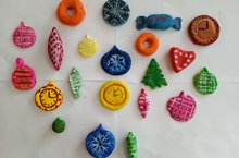 Кечкенәләр төркеменә йөрүче балалар тозлы камырдан чыршы уенчыклары ясап, аларны төрле матур төсләргә буядылар.