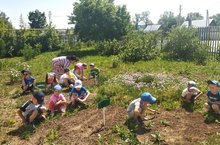 Бакчабызда булган тәҗрибә участогында да тәрбияче апалар белән берлектә балалар да эшлиләр. Кечкенәдән бакча тәрбияләү серләренә өйрәнәләр.
