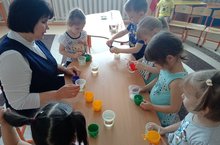 Кечкенәләр төркеменә йөрүче балалар су белән төрле тәҗрибәләр үткәреп карадылар.