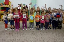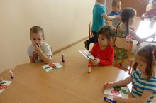 Зурлар төркеменә йөрүче балалар "Сертотмас үрдәк" әкияте буенча пластилиннан картонга әвәләп үртәкләр ясадылар.