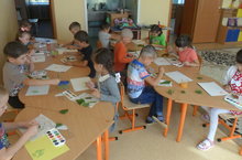 Зурлар төркеменә йөрүче балалар төрле-төсле көзге яфракларны төшереп ясадылар. Кайсы агачның яфрагы нинди төскә кереп саргаюын ачыкладылар.