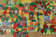 Зурлар төркеменә йөрүче балалар үз фотокарточкаларын куеп, көзге төрле-төсле яфраклардан рама ясадылар.