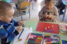 Бүген балалар пластилиннан кар бабай әвәләделәр.Балалар,шул рәвешчә,пластилин белән эшләү күнекмәләрен ныгыттылар.