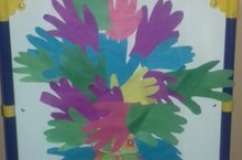 Әниләр көне атналыгында балаларнын кул жылысын кушып ясаган чәчәк букеты.