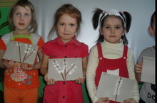 Кошлар- безнең дуслар атналыгында тышкы билгеләренә карап кышлаучы һәм күчмә кошларны аера белү күнекмәләре үстерелде.Балалар кошлар турында шигырьләр ,җырлар,табышмаклар,әйтемнәр өйрәнделәр.Өй эше итеп балаларга сыерчык оялары ясарга кушылган иде.Ахметов Ранилнең һәм Тагиров Данисның әтиләре ясаган оялар иң матуры дип табылды.Сыерчык оялары ясаган гаиләләргә рәхмәтебезне белдерәбез.