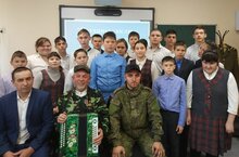 В ГБОУ «Сабинская школа-интернат для детей с ОВЗ» прошло воспитательно-патриотическое мероприятие для 6-9 классов под названием «Ватанны саклау - изге бурыч!» Участниками этого мероприятия стали гости Каримов Миннислам и участник СВО Р.Р., который в данный момент находится в отпуске.
