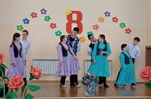 Безнең мәктәптә бүген, 8 март- Халыкарар хатын кызлар көне уңаеннан, бәйрәм кичәсе уздырылды. Һәр сыйныф укучылары матур итеп бәйрәм котлавы һәм җыр-биюләр әзерләгән иде. Бәйрәм татар халкының милли уеннары белән үрелеп барды.