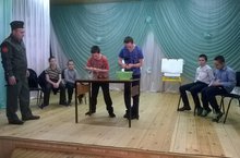 В рамках месячника оборонно-массовой и военно- патриотической работы сегодня в сельском клубе проходил школьный военно-спортивный праздник «А ну-ка, парни!» Соревнования проводились с целью патриотического воспитания учащихся, подготовки их к службе в рядах Вооружённых сил Российской Федерации, популяризации здорового образа жизни, привлечения молодёжи к активным занятиям физической культурой и спортом.В соревнованиях принимали участие команды "Звезда" и "Ак Барс". В зале собрались болельщики,которые горячо поддерживали свои команды во время выступления. В программу конкурса входили спортиные,музыкальные,интеллектуальные испытания.Жюри, после подведения итогов конкурса, огласили результаты и наградили победителей и участников соревнований грамотами.Укучыларга хәрби патриотик тәрбия бирү максатыннан, бүген авыл клубында "Ягез әле,егетләр!" спорт бәйгесе булып узды.Бу бәйгедә 6-7 сыйныфтан ике команда "Ак барс" һәм "Йолдыз" көч сынашты,ә аларга залдан классташлары һәм укытучылары җан атып утырдылар. Бәйге төрле чаралардан торды,уенчылар үзләренең спорт,белем,җыр өлкәсендәге белемнәрен күрсәттеләр.Соңыннан жюри йомгак ясап мактау кәгазьләре таратты. -