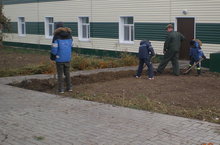 Мәктәп яны бакчасын җыештыруда һәм түтәлләрне кышка казып куюда югары сыйныф укучылары актив катнаша.