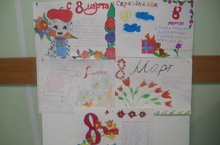 К празднику 8 Марта мальчики сделали поздравительные плакаты для девочек. Просмотр фотографий.