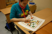 Скоро 23 февраля - День защитников Отечества. Ученики начали готовиться к празднику. Мальчики из дерева делают изделия, девочки шьют, вышивают, вяжут. Ученица 8 класса Дорофеева Юлия вышивает крестиком композицию "Жар птица".