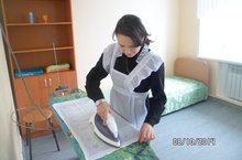 В рамках месячника трудового воспитания и социально-бытовых знаний учитель СБО Ахметзянова Алсу Адгамовна провела открытый урок в 6 классе на тему «Утюг. ТБ при работе с утюгом». Айгуль научилась правильно пользоваться утюгом, гладить разное белье из разных тканей.