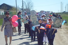 Вот и настал долгожданный день Сегодня состоялся митинг, посвященный 70-летию Великой Победы. В первой части торжественно открыли обелиск в память павших односельчан. Почетную миссию выполнили Глава Сабинского муниципального района Минниханов Р.Н. и наш земляк- Галиев Марат, главный спонсор установления нового обелиска в память павших односельчан. Наши обучающиеся организовали Почетный караул, подготовили музыкально-художественное выступление и концертные номера, возложили цветы к обелиску и бюсту Корбангали Тимергалиева. Директор школы Мавлитов Н.М. назвал и наградил победителя и призеров акции "70 пятерок-это моя Победа!". Победителем стала ученица 3 класса Харматуллина Дильбар, призеры: Нуриахметов Ильмир (2 класс), Шамилов Алмаз (4 класс), Мавлитов Ильназ (5 класс), Нурмухаметова Айгуль ( 7 класс), Валияхметова Алиса ( 7 класс). Во второй части состоялся праздничный парад, посвященный Победе