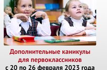Дополнительные каникулы для первоклассников - с 20.02.2023 г. по 26.02.2023 года
