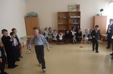 В рамках месячника патриотического воспитания прошло соревнование "Веселые старты" среди мальчиков 1-4 классов. Мальчики соревновались в быстроте и в ловкости, решали задачи, вспоминали пословицы, пели и танцевали. Весело и полезно провели время.