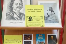 В рамках мероприятий, приуроченных к 350-летию со дня рождения первого Всероссийского Императора Петра I, в нашей школьной библиотеке работает выставка "Первый император".