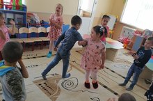 Кырыйдагы бачачар туктап калалар, уртадагы бала, җырлый-җырлый, нинди дә булса, хәрәкәт күрсәтә: