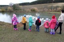 Балаларда туган якка карата ярату хисләре тәрбияләү, тирә-юнь турындагы белемнәрне киңәйтү максатыннан балалар белән күл буена бардык. Анда төрле көзге табигый үзгәрешләрне күзәттек.