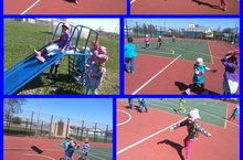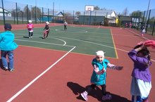 Без бүген физкультура шөгыле уңаеннан спорт площадкасында кызлар малайлар белән баскетболл уйнадык.
