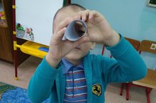 Безгә бүген Рус теле шөгылендә Дед Мороз бинокль бүләк итте, һәм без бинокль ярдәмендә дусларыбызны карадык һәм аларда нинди уенчыклар барлыгын сөйләп бирдек.