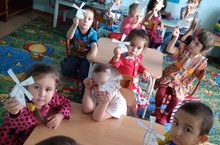 Бүген ябыштыру шөгылендә тегермән ябыштырдык. Балаларга бик ошады.