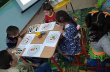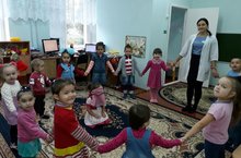 Җырлы-биюле уенда балалар бик игьтибарлы булдылар,уртада утыручы күзләре бәйләнгән Мәликә каршында утырган уенчының кем икәнен дөрес итеп таныды!