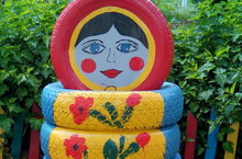 Безне бакчабызның ишегалдында яңа сын үз урынын тапты. Гади машина тәгәрмәчләреннән нинди матур сыннар ясап була икән, бары тик фантазияне эшкә җигәргә кирәк!