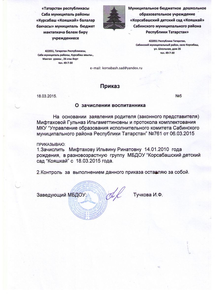 Адрес: 422051, Республика Татарстан, Сабинский район, с. Корсабаш, ул.Школьная, зд.29. Филиал 422051, Республика Татарстан, Сабинский район, д.Нижние Отары, ул.Кирова, д.1