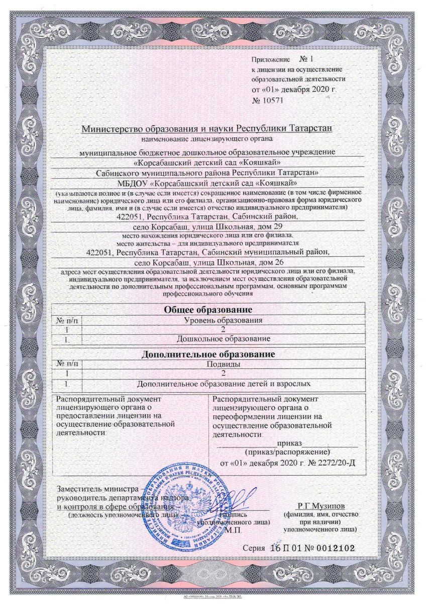 | Адрес: | 422051, Республика Татарстан, Сабинский район, с. Корсабаш, ул.Школьная, зд.29. Филиал 422051, Республика Татарстан, Сабинский район, д.Нижние Отары, ул.Кирова, д.1 |