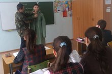 Бүген ТИН атналыгы кысаларында ТИН укытучысы Башаров Ф.Ш. 8 сыйныфта ачык дәрес күрсәтте. Дәрес “Радиактив аварияләр вакытында үз-үзеңне тоту кагыйдәләре. Халыкны эвакуацияләү.” темасына багышланды. Укытучы мондый хәлләрдә нишләргә кирәклеген презентация ярдәмендә аңлатты. Практик эштә укучылар мамыклы-марлялы повязка, ОЗК, противогаз кияргә өйрәнделәр. Дәрес таләпләргә туры китереп әзерләнгән һәм үтте.