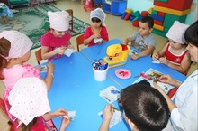 Бүген балалар тегүче hөнәре белән таныштылар. Тегүче, эш кораллары турында табышмаклар чиштеләр, шигырьләр тыңладылар. Энә, кайчы белән эшләгәндә куркынычсызлык кагыйдәләрен искә төшергәч, үзләре дә төймә тагарга өйрәнделәр.