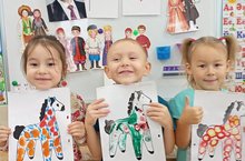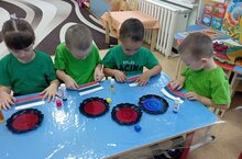 Уртанчылар төркеме балалары белән "Россия - зур дәүләт" темасына әңгәмә үткәрелде. Балалар Россияның гербы, флагы белән таныштылар. Кисеп-ябыштыру шөгелендә Россия флагын ясадылар.