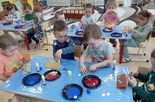 Бүген зурлар төркеме балалары дымково уенчыклары белән таныштылар. Уенчыкларның кайда, ничек ясалуын белделәр. Бизәлешенә игътибар иттелэр. Дымково атын бизәделәр. Үзенчәлекле, кабатланмас дымково атларыннан күргәзмә оештырылды