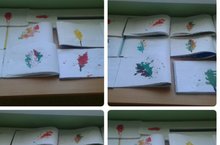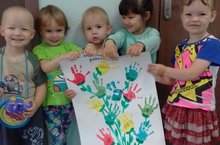 Бүген 27 сентябрь, Тәрбиячеләр һәм мәктәпкәчә тәрбия хезмәткәрләре көне уңаеннан кечкенәләр төркеме балалары белән, без бүләккә стенгазета ясадык. Балалар нәни кулларын краска белән буяп чәчәкләр ясады.