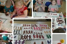 Они научились делать силуэт человека в хороводе с помощью складования бумаги как гармошка, в результате у них получилось несколько человечков в хороводе.