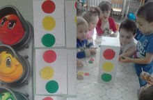 Кечкенәләр төркеме балалары белән танып белү эшчәнлегендә урам, андагы объектлар, күренешләр белән таныштык. Балалар машиналар юлы, тротуар турында белемнәрен тулыландырдылар. Светофор белән таныштылар, утларына карап юл аша чыгарга өйрәнделәр. Белемнәрен ныгыту максаты белән балалар үзләренә светофор ясадылар.