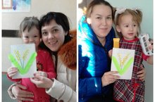 Нэниләр үз куллары белән тырышып әниләренә язгы чәчәк мимоза ясадылар.