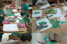 Буген зурлар төркеме балалары кисеп ябыштыру шөгылендә бик матур открытка ясарга өйрәнделәр. Тиздән җитәчәк Яңа ел бәйрәме уңаеннан бәйрәм белән котлау өчен алар ачылмалы открытка ясадылар. Открытканы ачкач аннан бизәлгән яшел чыршы килеп чыга. Алар башта Яңа ел бәйрәмен ничек итеп үткәрү турында сөйләштеләр, аннан әзер открытканы карадылар, ә соңыннан открытка ясау тәртибе белән таныштылар һәм үзләре дә ясадылар. Һәр бала чыршыны һәм открытканы үзенчә бизде.Аннары кемгә бүләк итүләре турында да әйтеп бирде.