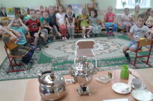 Бүген зурлар төркеме балалары сөйләм үстерү шөгылендә "Чагыштырма хикәя төзү. «Чәйнек белән самавыр» дигән теманы өйрәнделәр. Алар бер-берсен тыңларга һәм җавапларны тулыландырырга,савыт-сабаны урынлы куллана белергә өйрәнделәр. Савыт-сабаларның нидән ясалганы турында белемнәрен тулыландырдылар. Самавыр, эмаль, фарфор сүзләрен истә калдырырга тырыштылар. Чәйнек белән самавырның өлешләрен, охшаш һәм аермалы якларын әйтеп кечкенә хикәя төзеп сөйләделәр.Шөгыльнең иң кызыклы өлеше "Самавыр" уены булды.